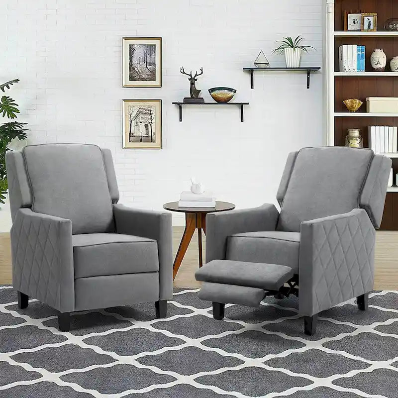 AVAWING Set of 2 Push Back Recliner Chair Linen Wing Back Chair