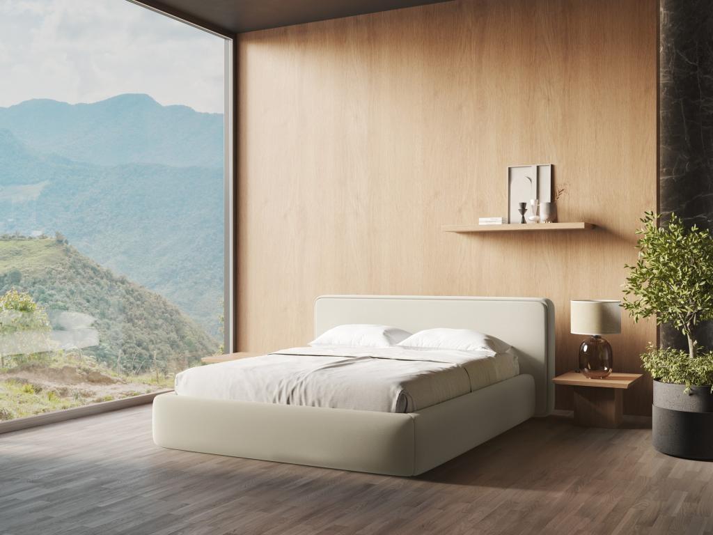 Combination of beige tones and boucle fabric details delivers a cosy and earthy vibe