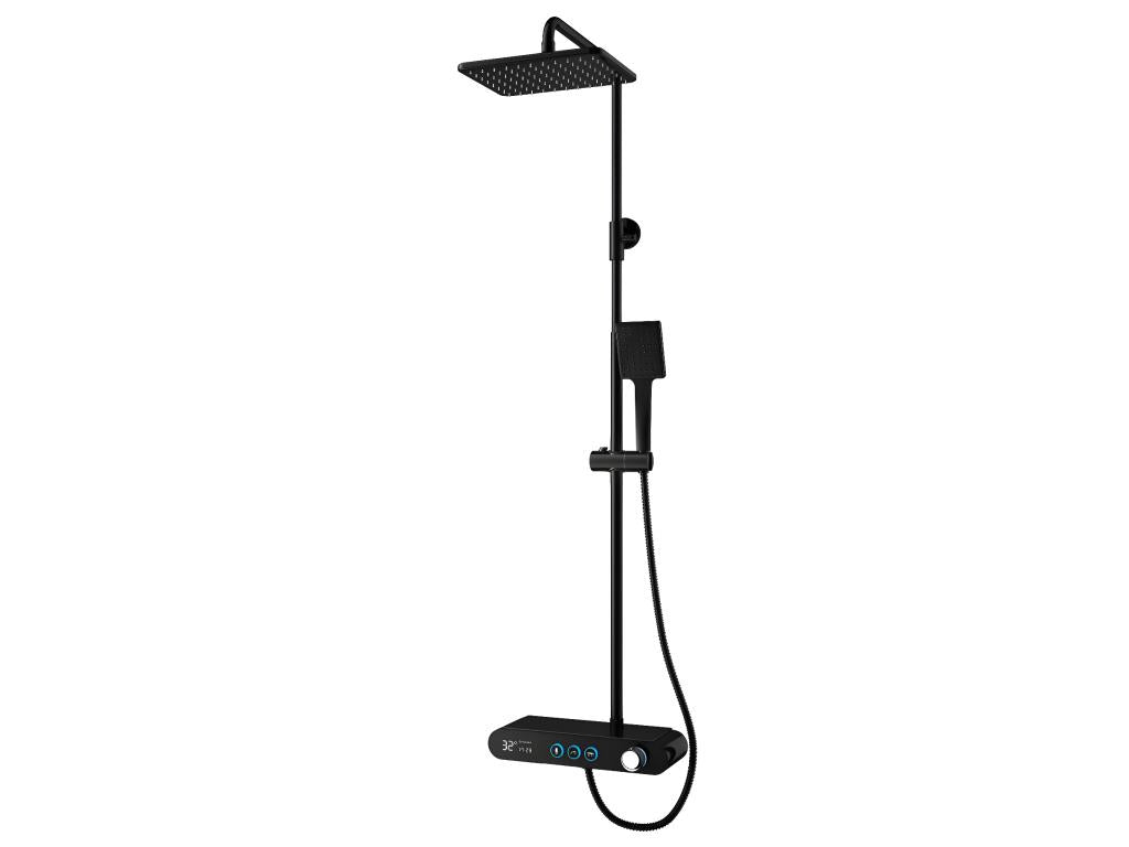 Combination of black tones and mixed materials details delivers a cosy and earthy vibe