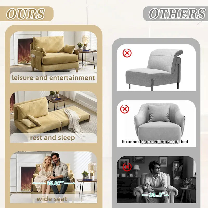 - Our product is perfect for small spaces or sofas that require a combination of functions, whether it is for leisure and entertainment, or rest and sleep, this convertible sofa bed will be your first choice, with high-quality sofas and classic and stylish color schemes, can be adapted to different home environments
