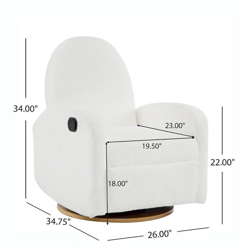 Experience the perfect blend of modern elegance and comfort with this stunning recliner. Its sleek design enhances your living space while serving as a captivating statement piece. Enjoy ultimate relaxation with the smooth glider function, and let the 360-degree swivel and gentle rocking motion invite you to unwind effortlessly. Built on a solid wood base for durability, this chair ensures stability for years to come. With easy assembly, you'll soon find your new favorite spot to savor moments of peace and tranquility.