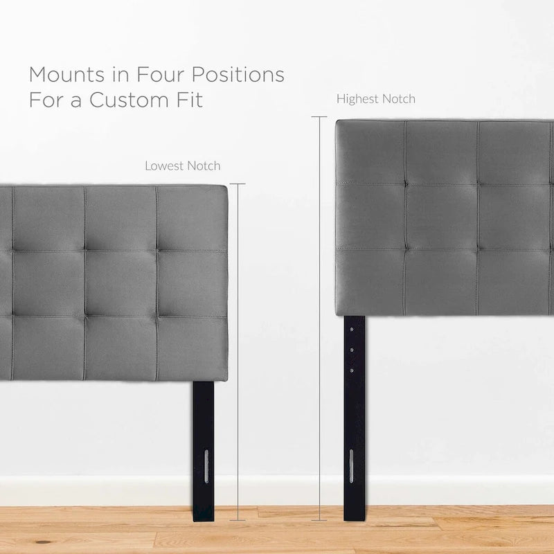Add vintage charm and modern luxury to your bedroom with the Copper Grove Worishofen Full-size Tufted Velvet Headboard. The soft, plush biscuit tufting adds timeless appeal to this upholstered velvet headboard, making it an elegant centerpiece in any room. Perfect for a teen's bedroom, guest room, or dorm, this stain-resistant headboard provides the ultimate comfort while relaxing, reading, or conversing in bed. Made with durable plywood and fiberboard, and featuring dense foam padding, this full-size velvet headboard is height adjustable from 45 - 52.5 with five mounting positions.