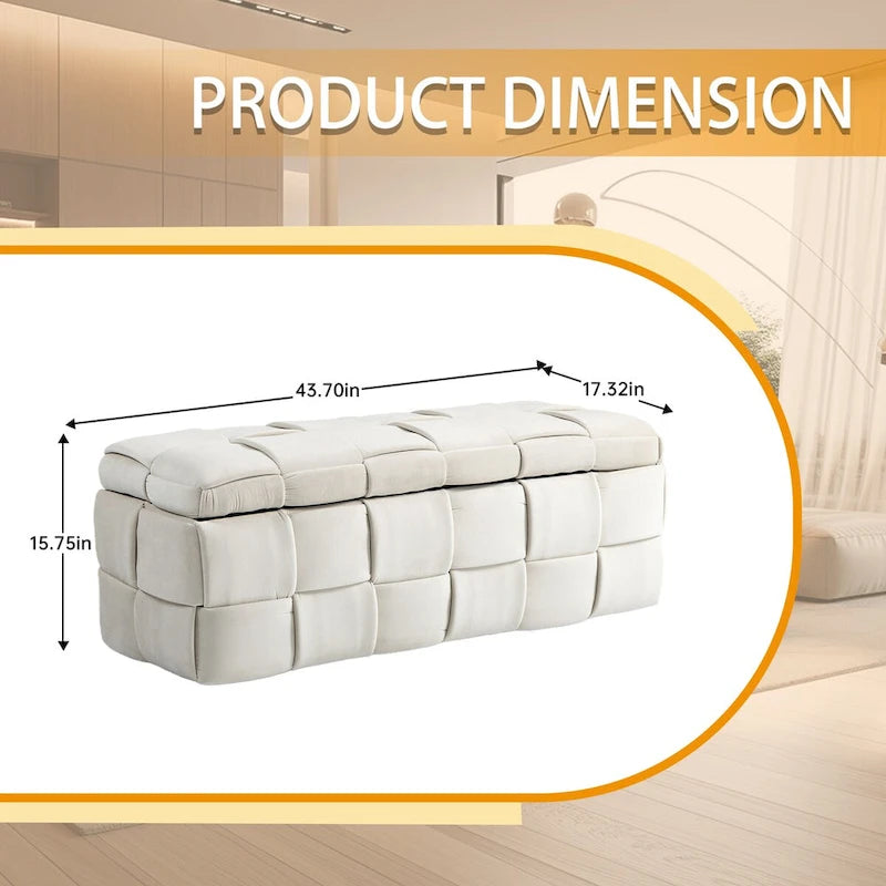 Velvet Upholstered Storage Ottoman Bench with Safety Hinge for Living Room,Bedroom