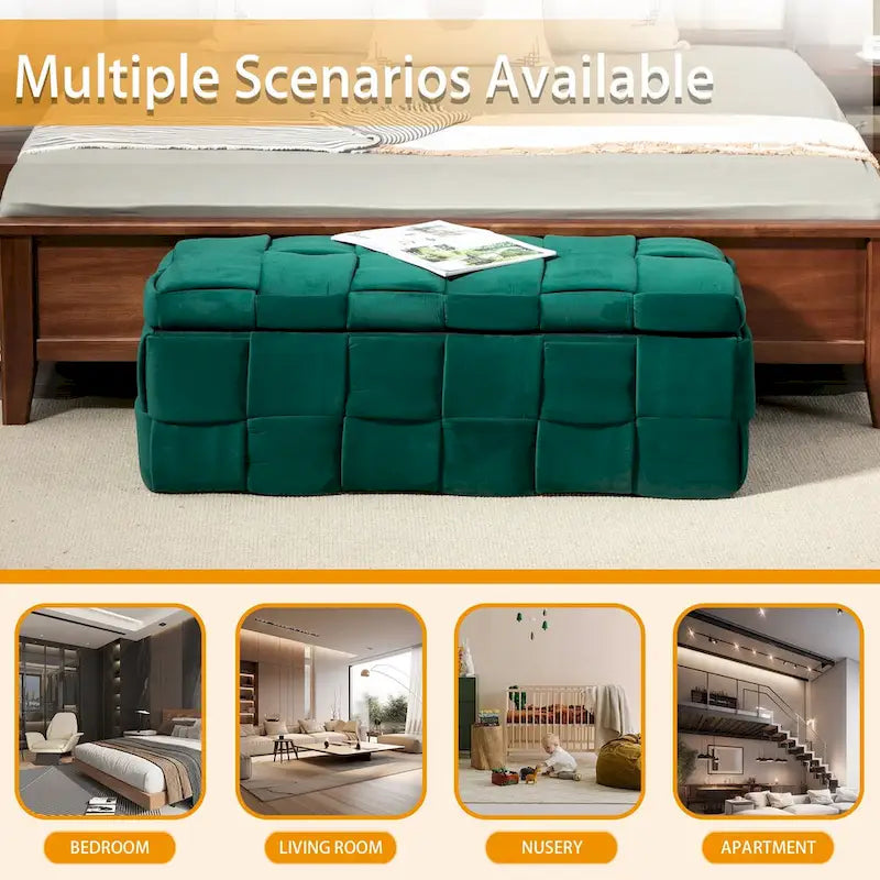 - Velvet storage benches are the perfect Storage ottoman bench for living rooms, bedroom, as shoe benches, extra window seat, in front of a sofa, as a coffee table-foot rest, store toys, end of a bed or over to the side in any room.