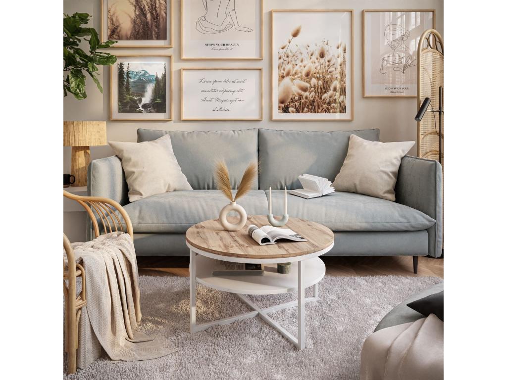 Combination of white tones and oak details delivers a cosy and earthy vibe